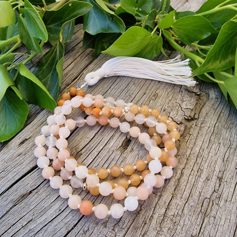 Oplev indre ro med vores betagende halskæde, der kombinerer 6 mm aventurin og jaspis, prydet med en smuk guru perle samt facetslebet bjergkrystal.