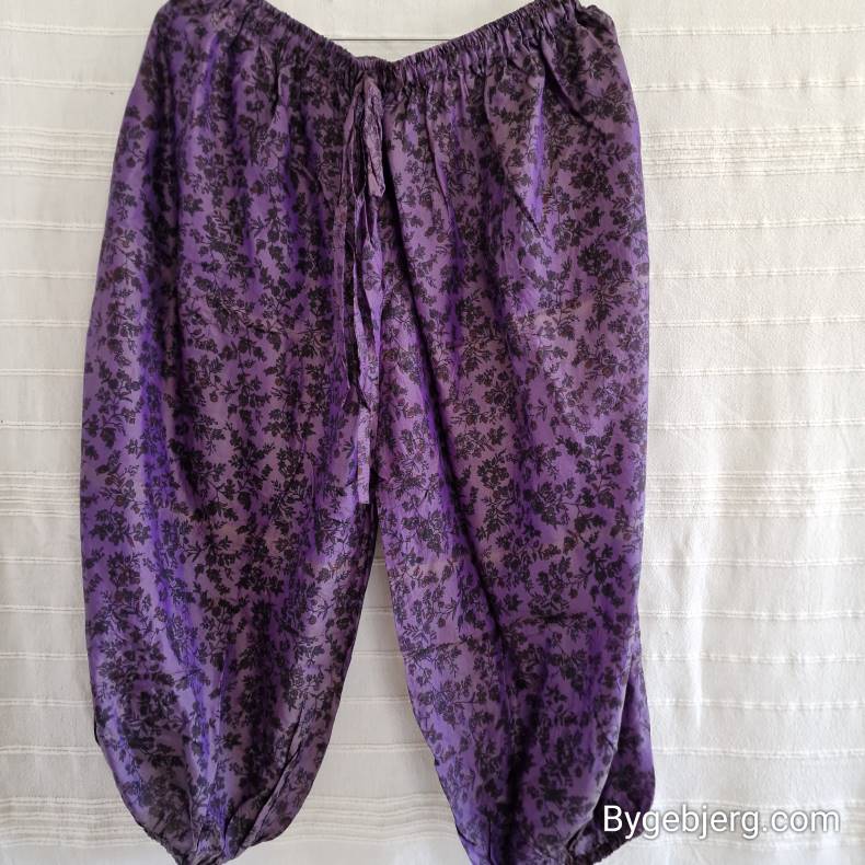 Silke bukser vintage saree lilla/grøn m/xl