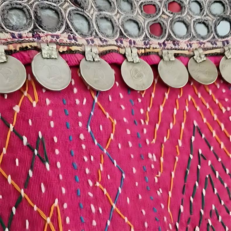 Elsker du tasker med sjæl og historie, så er denne unika skuldertaske lige noget for dig. Håndsyet af pink vintage kantha-tæpper, skabt med kærlige sting, spejle og antikke mønter, emmer den af charme og gamle tider.