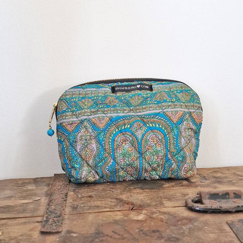 Silke kosmetikpung i varm mønstret turkis