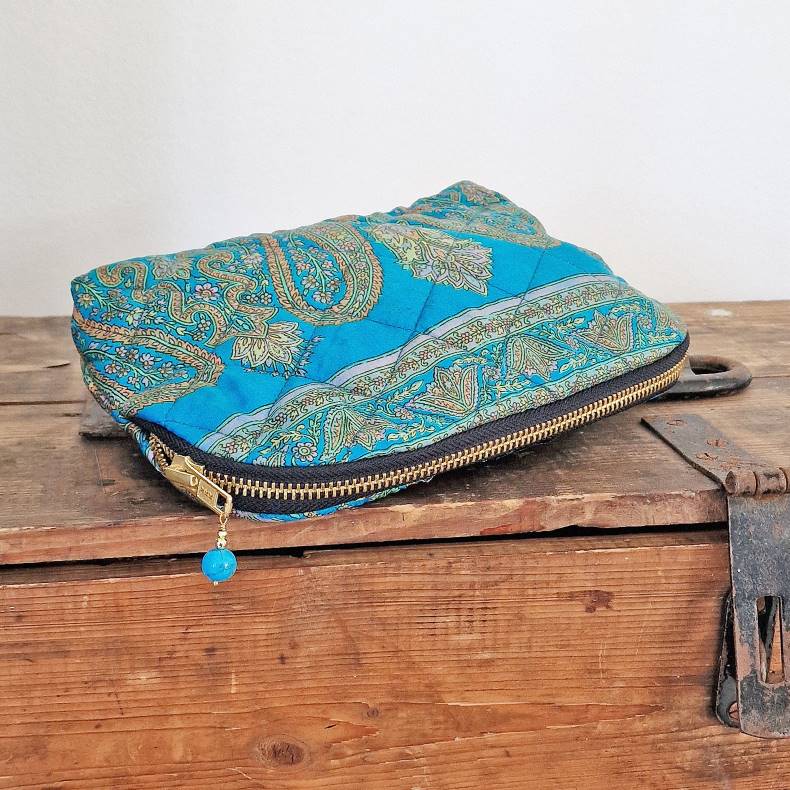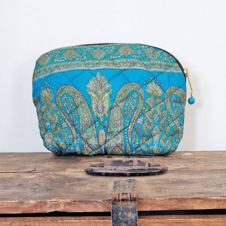Denne kosmetikpung er en lille skønhed, håndsyet af vintage silkesarier, så hver eneste er helt unik, men er selvfølgelig i familie med den viste..