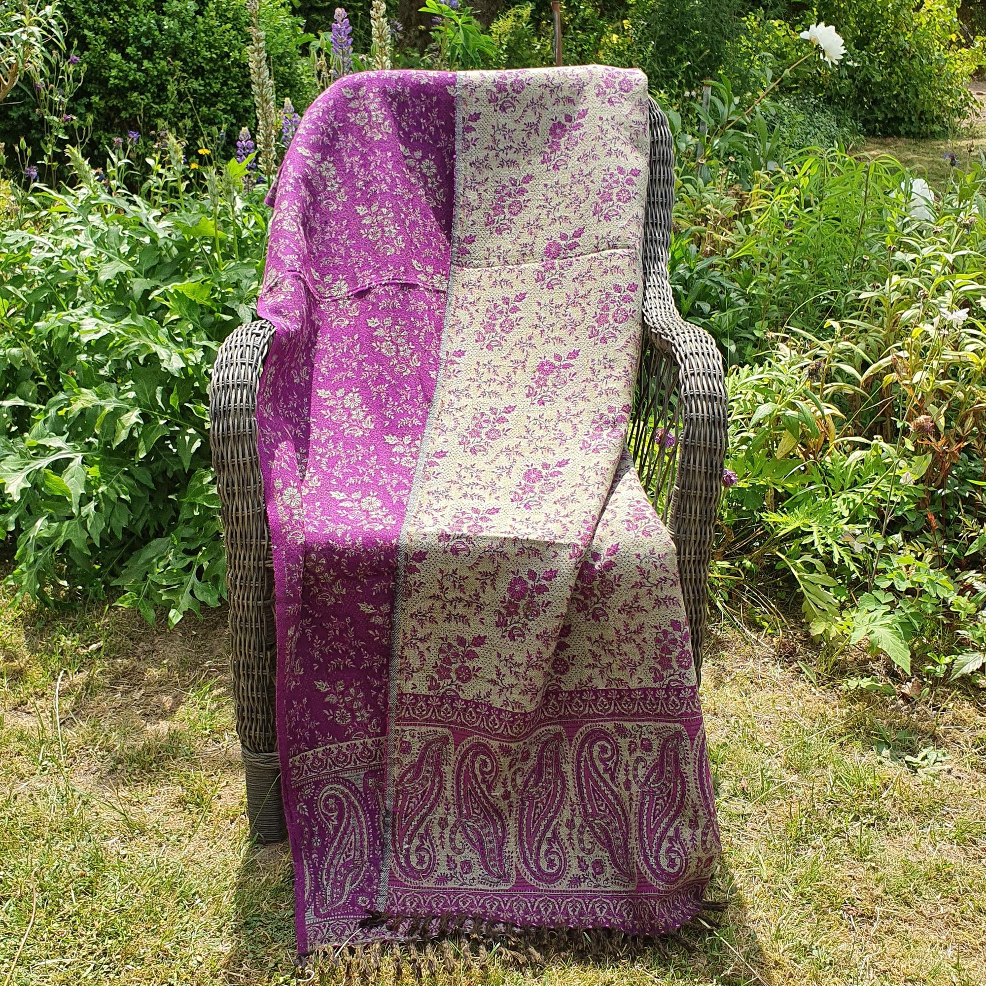 Den varme cerise pink farve tilfører liv til ethvert rum, så tæppet også fungerer glimrende som hyggetæppe i sofaen eller et let sjal på kølige sommeraftener. Gør dine stunder hjemme endnu mere behagelige!