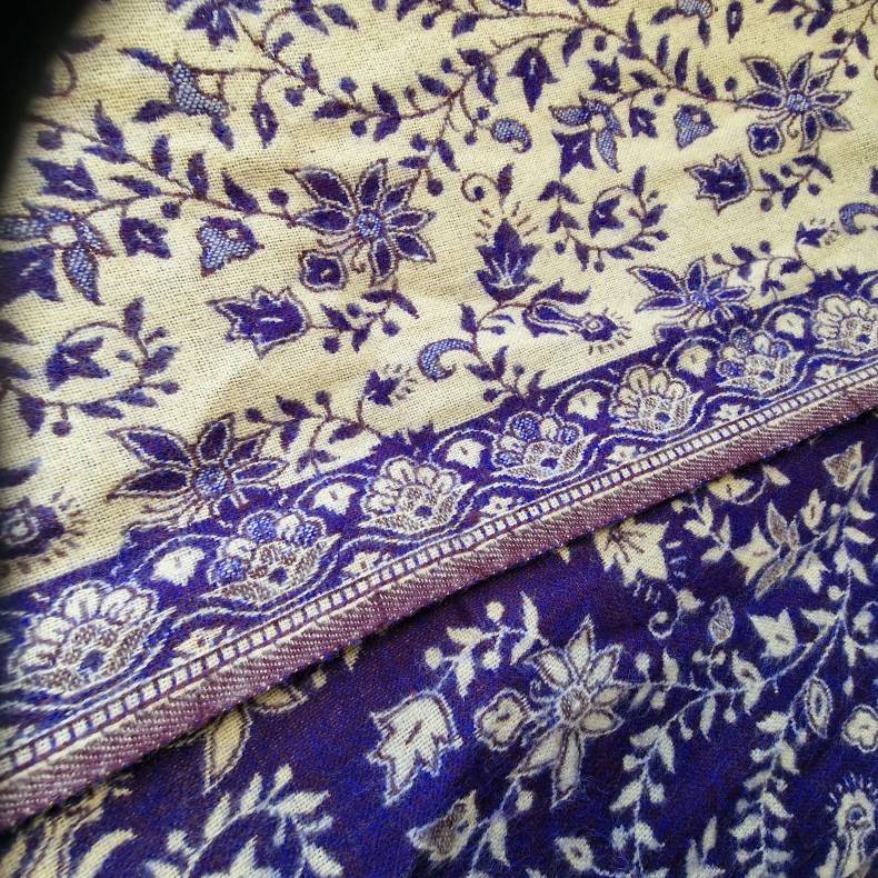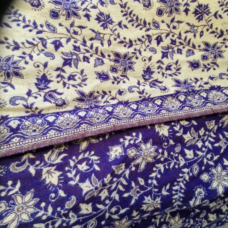 Vævet af ren yakokseuld, kan tæppet vaskes uden problemer, hvilket gør det praktisk i hverdagen. Det er blødt og kradser ikke – ideelt som hyggetæppe i sofaen eller et sjal på en kølig sommeraften. Tæppets blålilla nuance med flødefarvede detaljer tilføjer en elegant touch til ethvert rum.
