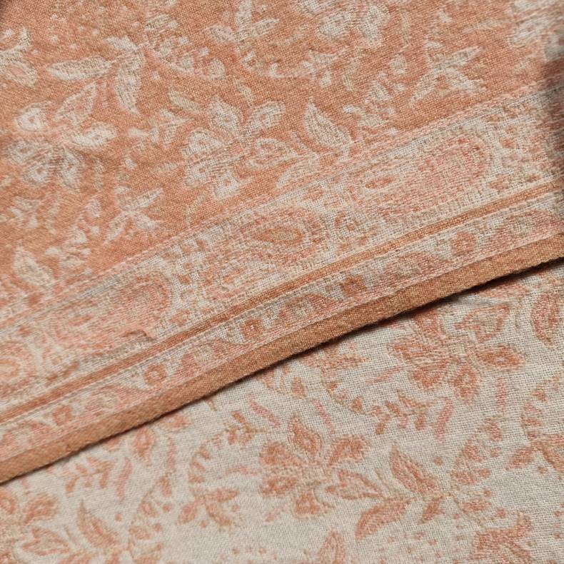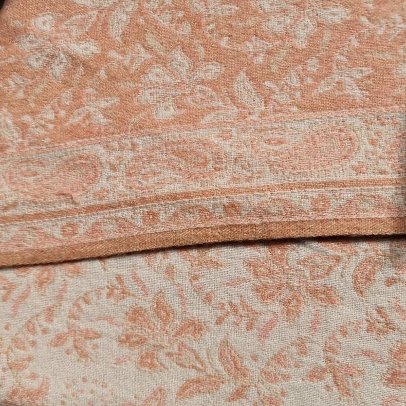 Farverne - et samspil af fersken og fløde - giver tæppet en sofistikeret charme, og med 217 x 98 cm får du et smukt, alsidigt tilbehør til både hjem og sjæl.