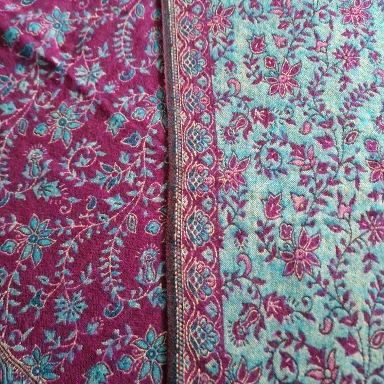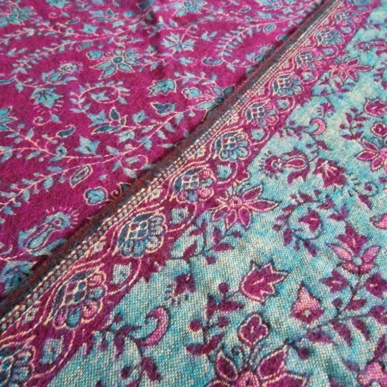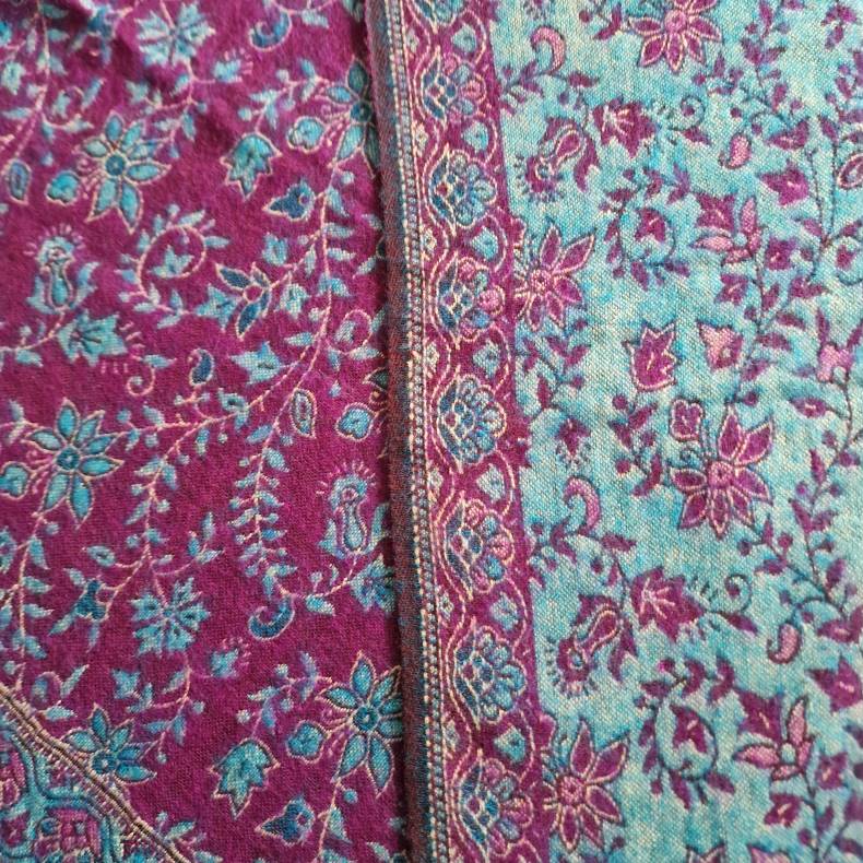 De fine farver i varm brun og blåturkis med brune frynser giver et elegant touch, der komplementerer enhver indretning.