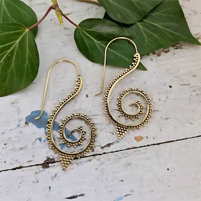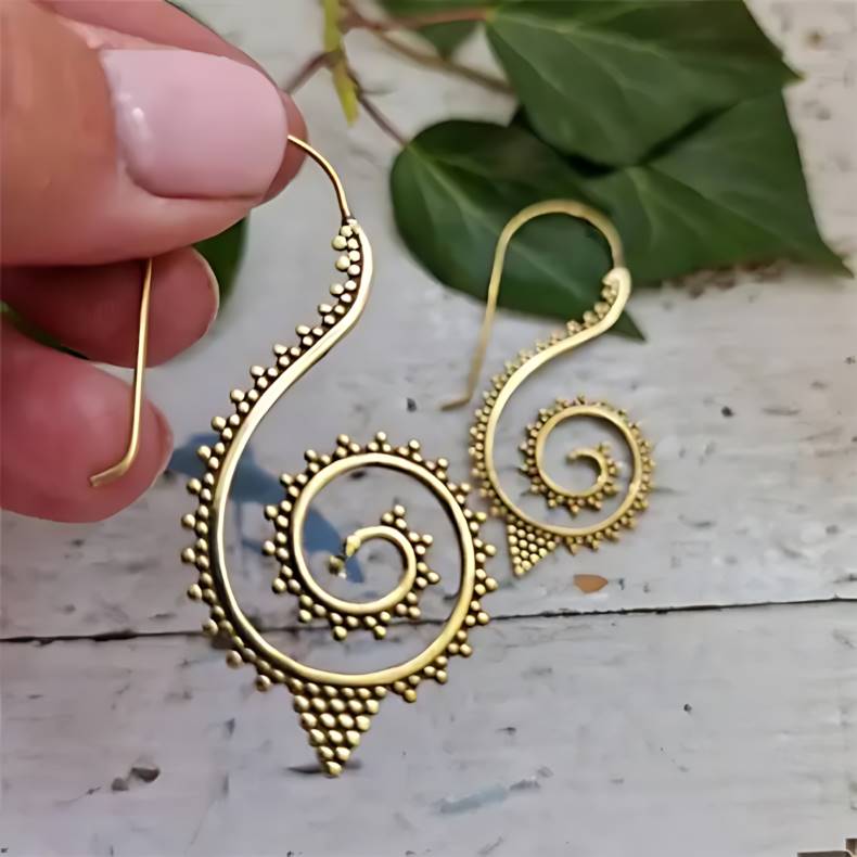 Forestil dig at tilføje et strejf af eksotisk elegance til din garderobe med vores kæmpestore indiske øreringe i messing/brass! Disse unikke smykker tilføjer ikke kun et luksuriøst boheme-look til dit outfit, men de bringer også en østlig flair, der fanger øjet med deres imponerende design. Med kun få par til rådighed, er disse øreringe mere end bare smykker - de er et statement!