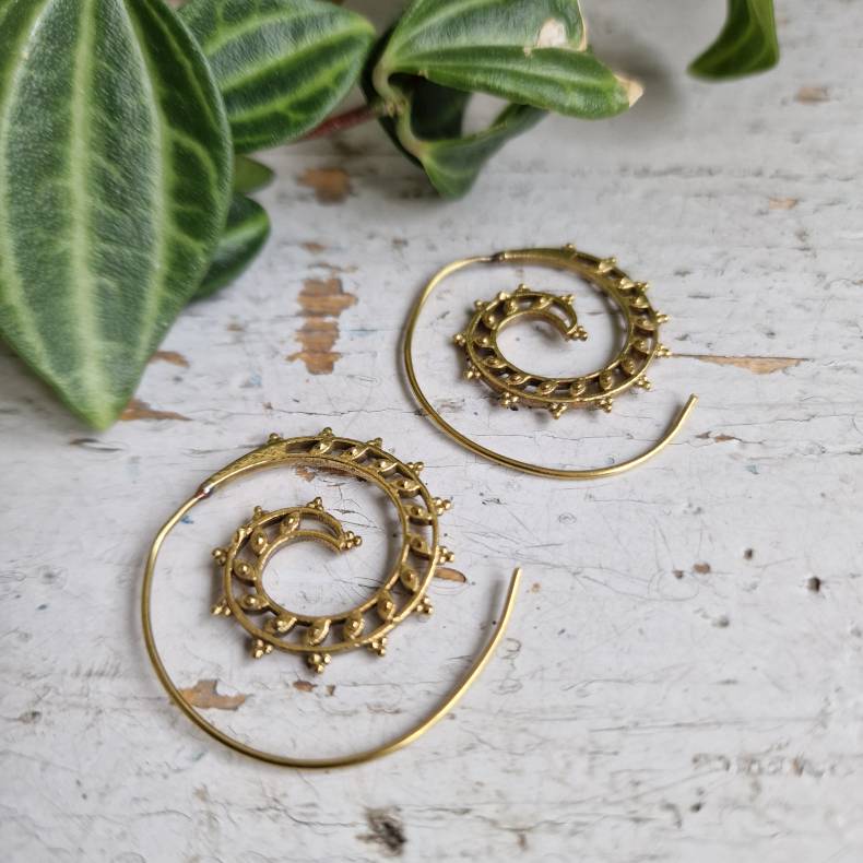 Smukke øreringe med eventyrlig charme, fremstillet i messing og udvalgt hos en lille smykkesmed i Indien. Hver detalje er præget af det fine, håndlavede mønster, der giver dem et autentisk og tidløst udtryk.
