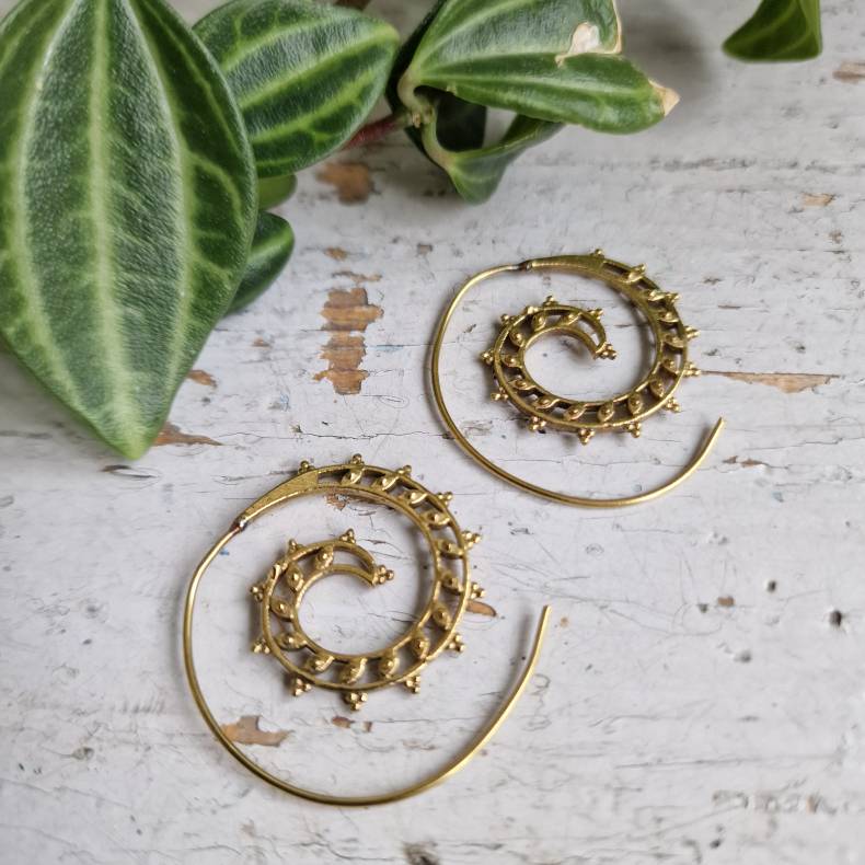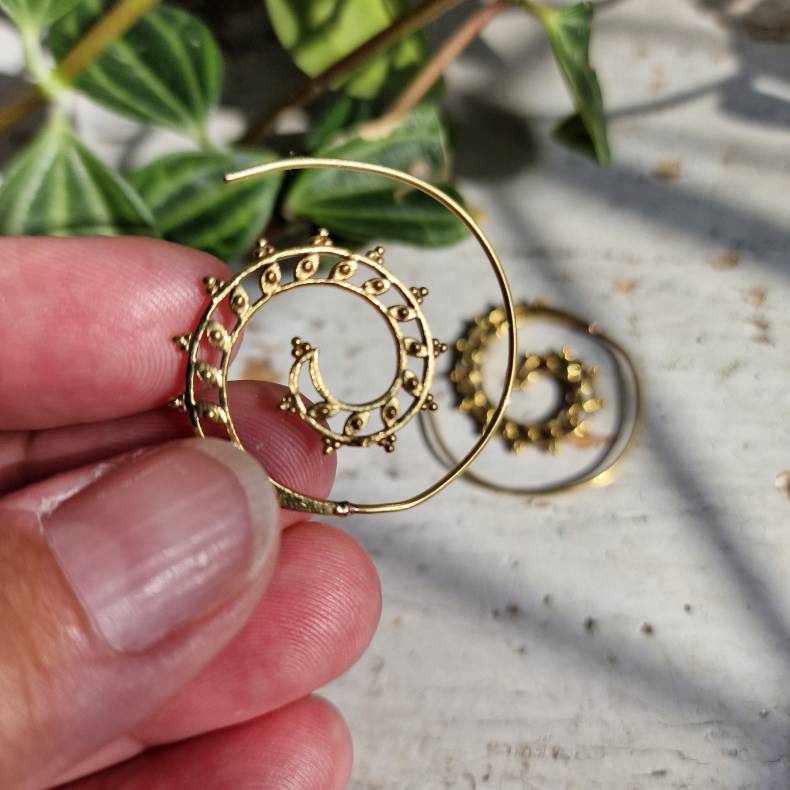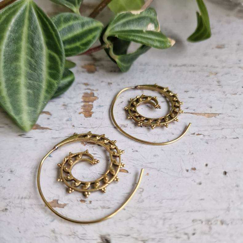 Øreringen måler ca. 3 cm fra hullet i øret og har en elegant spiralform, som ikke bare sidder godt, men også gør dem svære at tabe. De er lette og behagelige at bære hele dagen, samtidig med at de tilføjer et strejf af mystik og boheme til dit look.