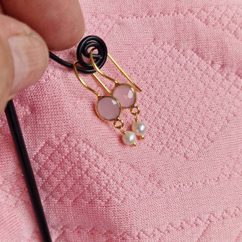 Petite ørebøjler med lyserød quartz og ferskvandsperle
