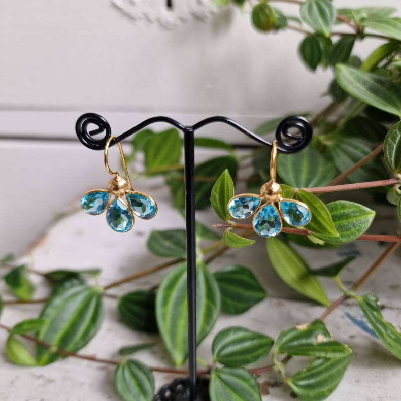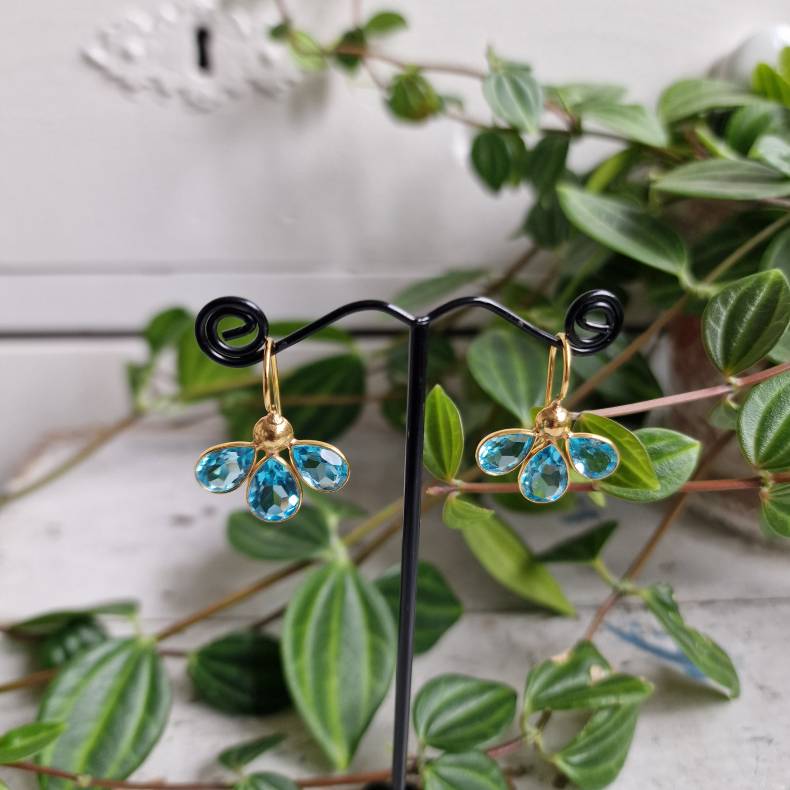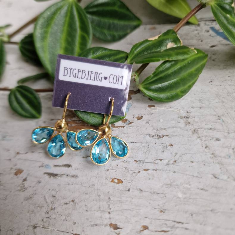 Stenene er lyse akvamarinblå quartz, der giver et smukt og friskt farvespil i klare blå nuancer. Farven er let og elegant og giver øreringene et roligt og feminint udtryk.