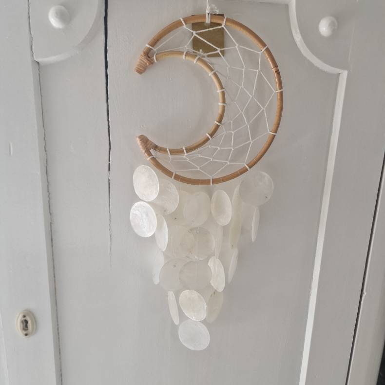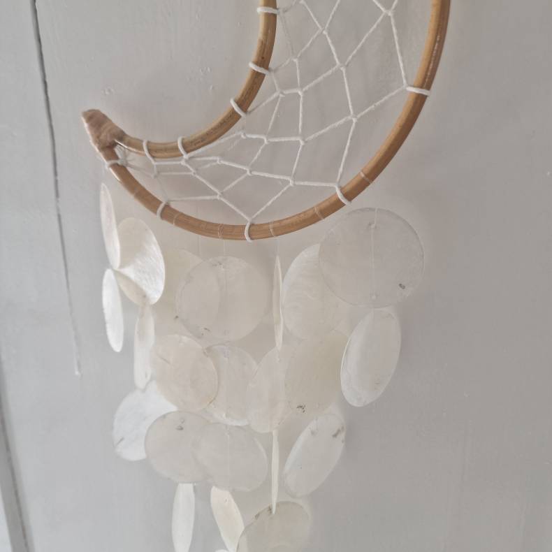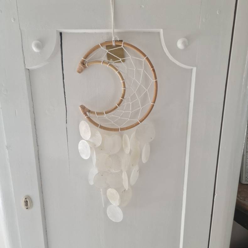 Drømmefanger Måne stor med skaller og vindspils effekt