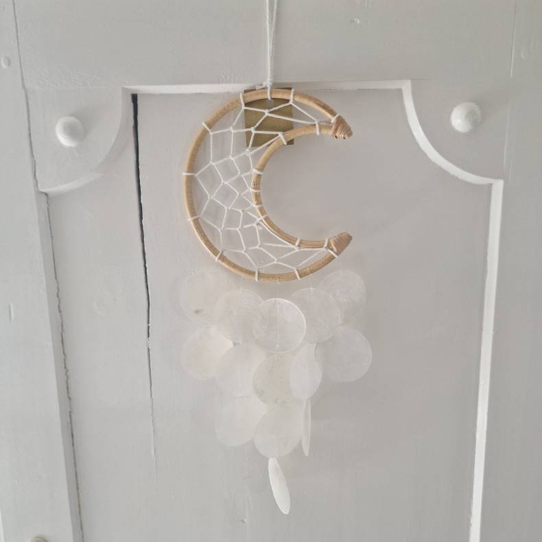 Drømmefanger Måne medium med skaller og vindspils effekt