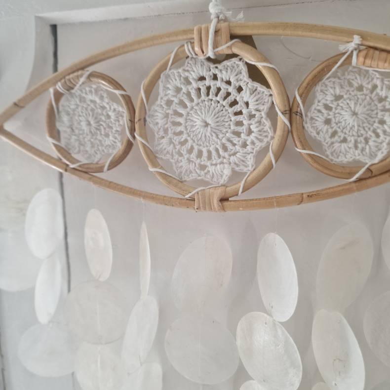 Drømmefanger 3 mandalaer i det tredje øje med skaller og vindspils effekt