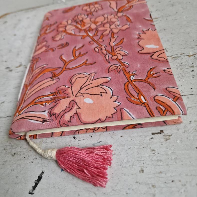 Giv dine tanker et smukt hjem med denne håndlavede notesbog, perfekt til alt det, der ikke skal glemmes! De bloktrykte mønstre på omslaget er skabt med en særlig teknik, hvor hvert tryk emmer af tradition og dygtigt håndværk. Bogen er ikke kun flot at se på – den giver en unik skriveoplevelse, når du fører pennen over de ca. 45 sider af tykt, struktureret papir, lavet af bomuldsrester fra tøjproduktion.