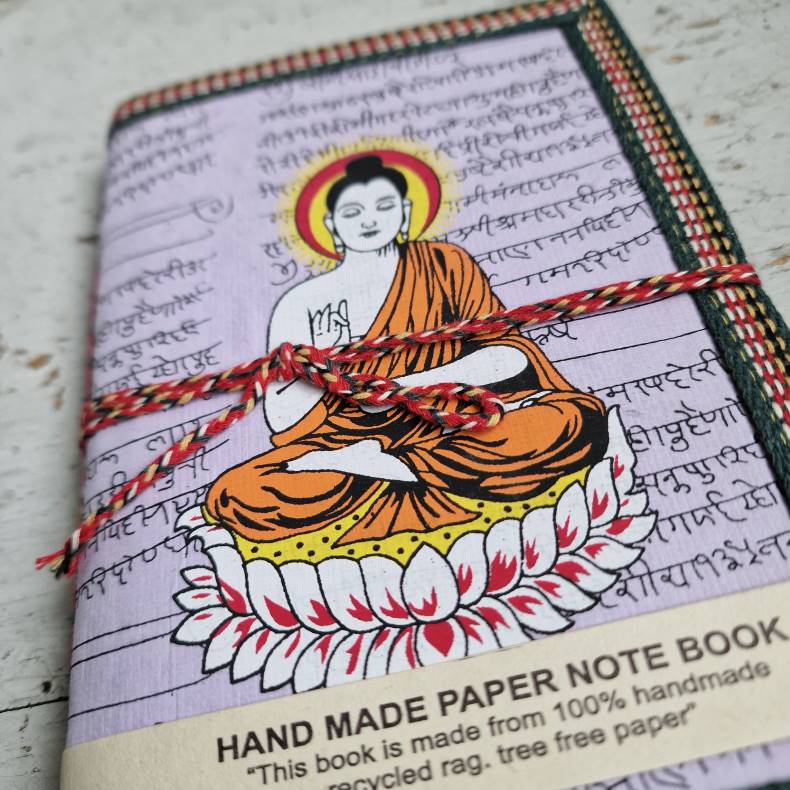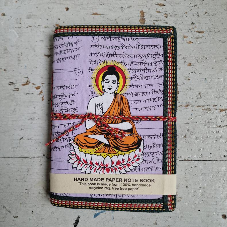 Denne lyslilla håndlavede bog med Buddha er skabt til dig, der har brug for et lille pusterum på papir.