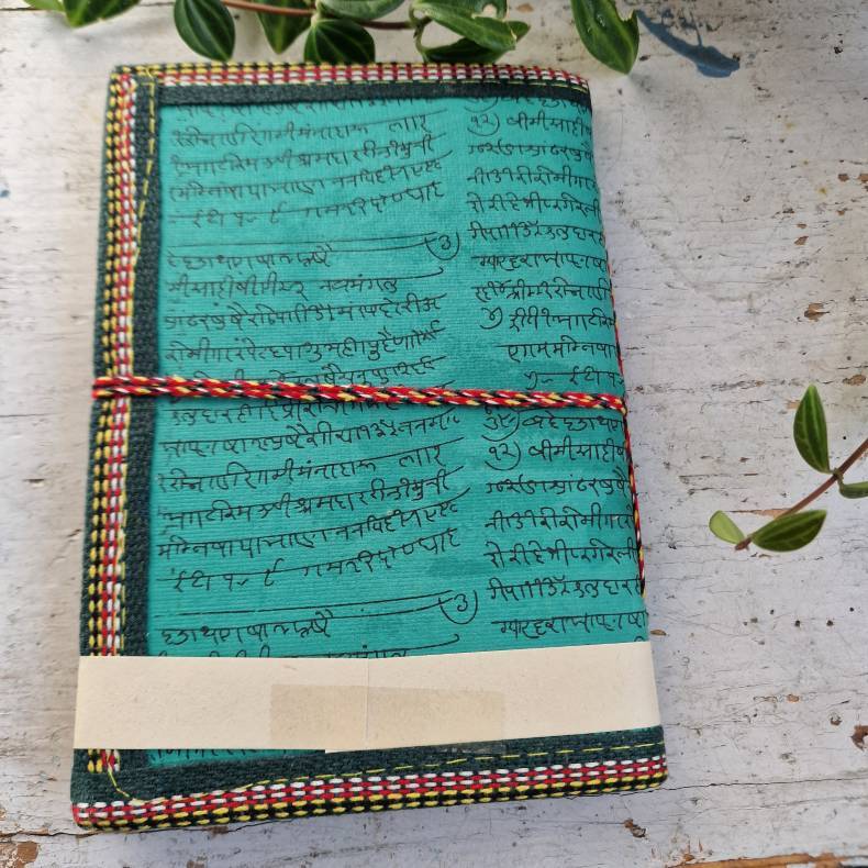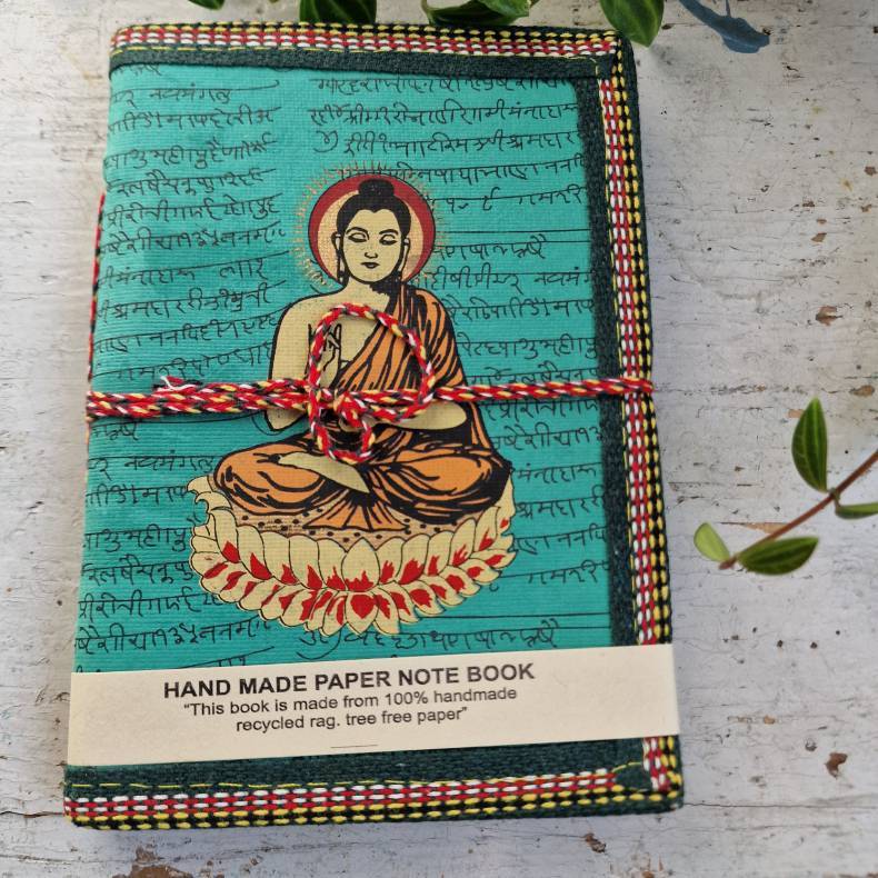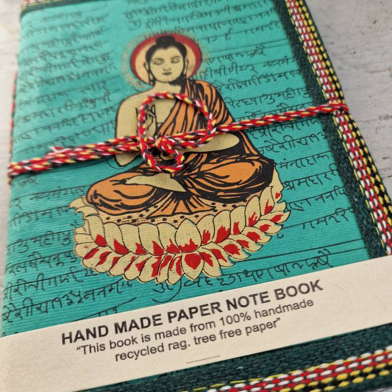 Håndlavet taknemmelighedsbog med Buddha – varm turkis bagside