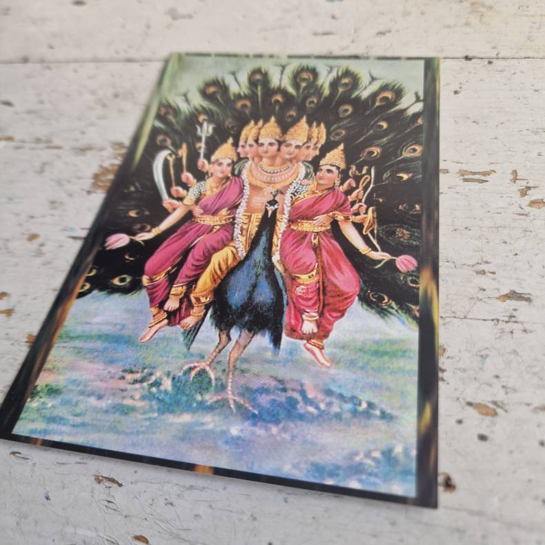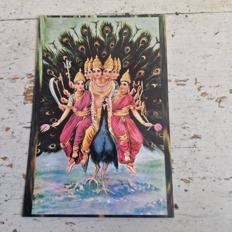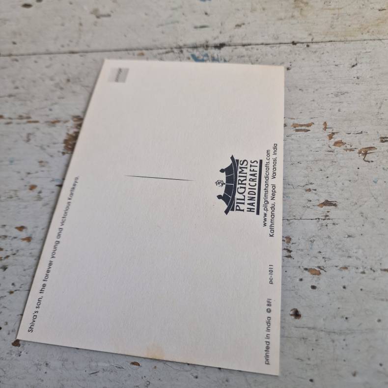 Unikt postkort med motiv af Kartikeya – Shivas søn, den evigt unge og sejrende krigsgud.