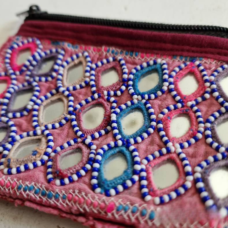 Dybt forankret i æstetik og funktionalitet, Vintage spejl pung No.12 måler 12x9 cm og oser af tidløs elegance.