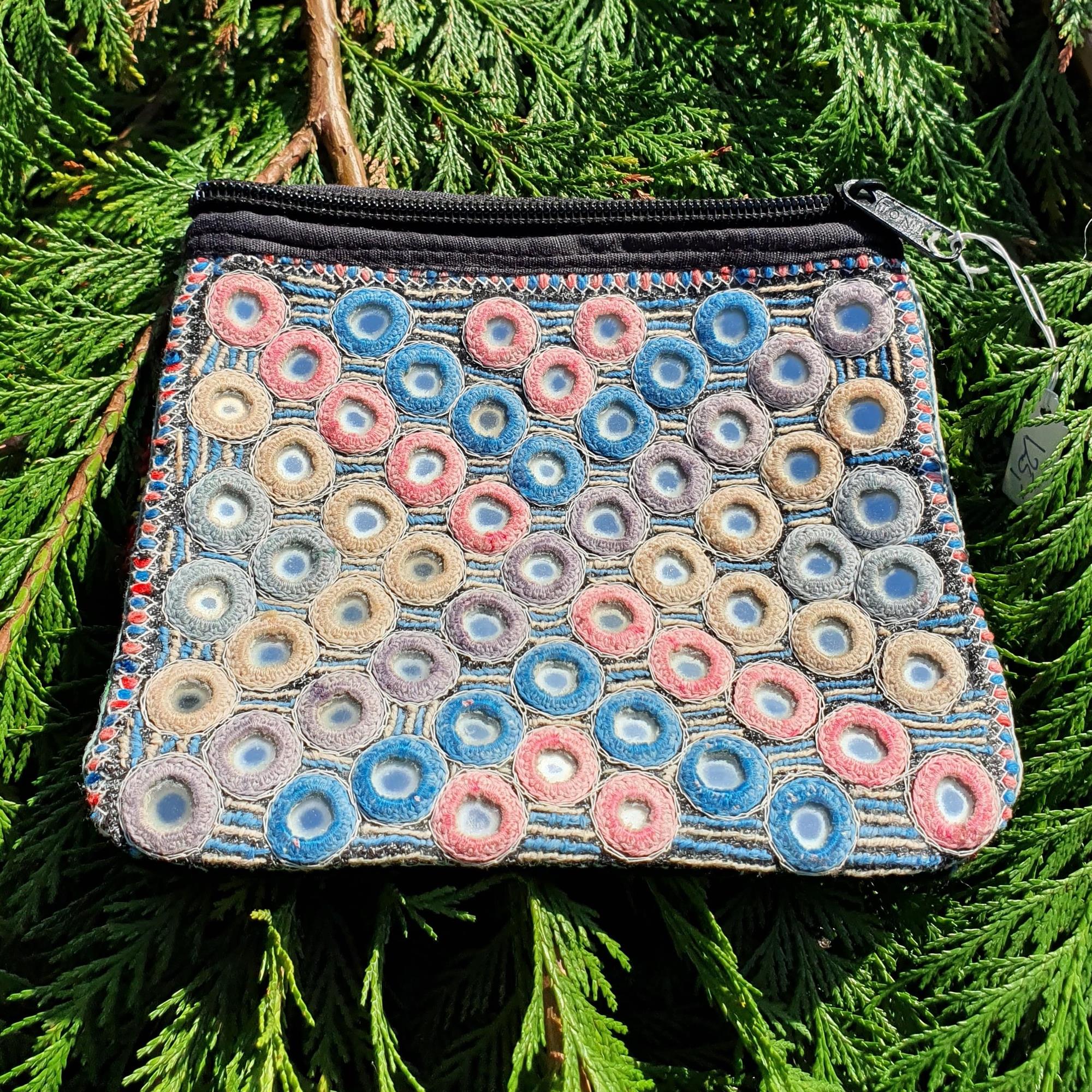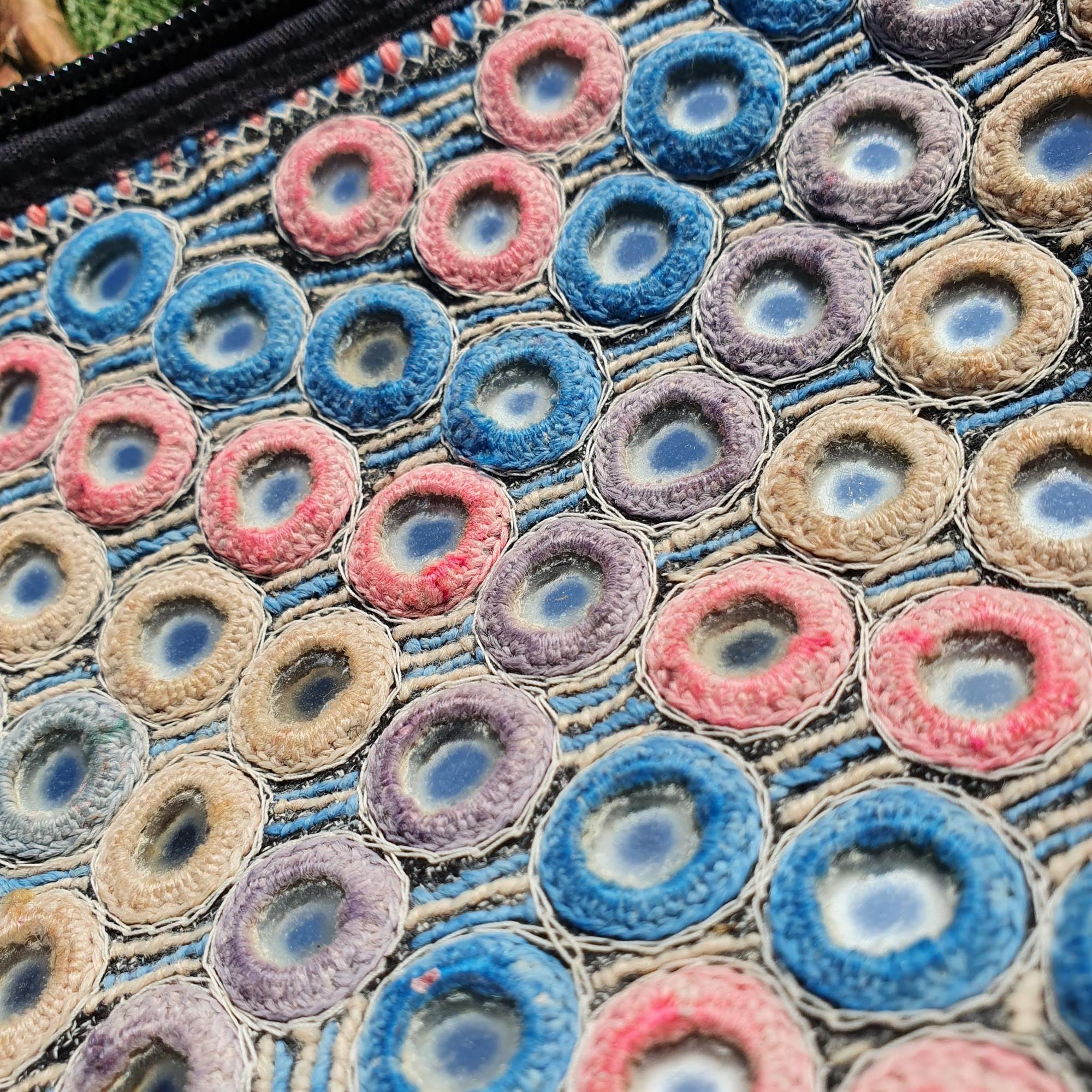 Nyd denne elegance med Vintage spejl pung No. 14. Hver pung er unik og håndsyet af traditionelle indiske stoffer, der fortæller deres egne historier. Disse små kunstværker bærer på charmen fra fortiden med småfejl og mangler, der kun tilføjer til deres karakter.