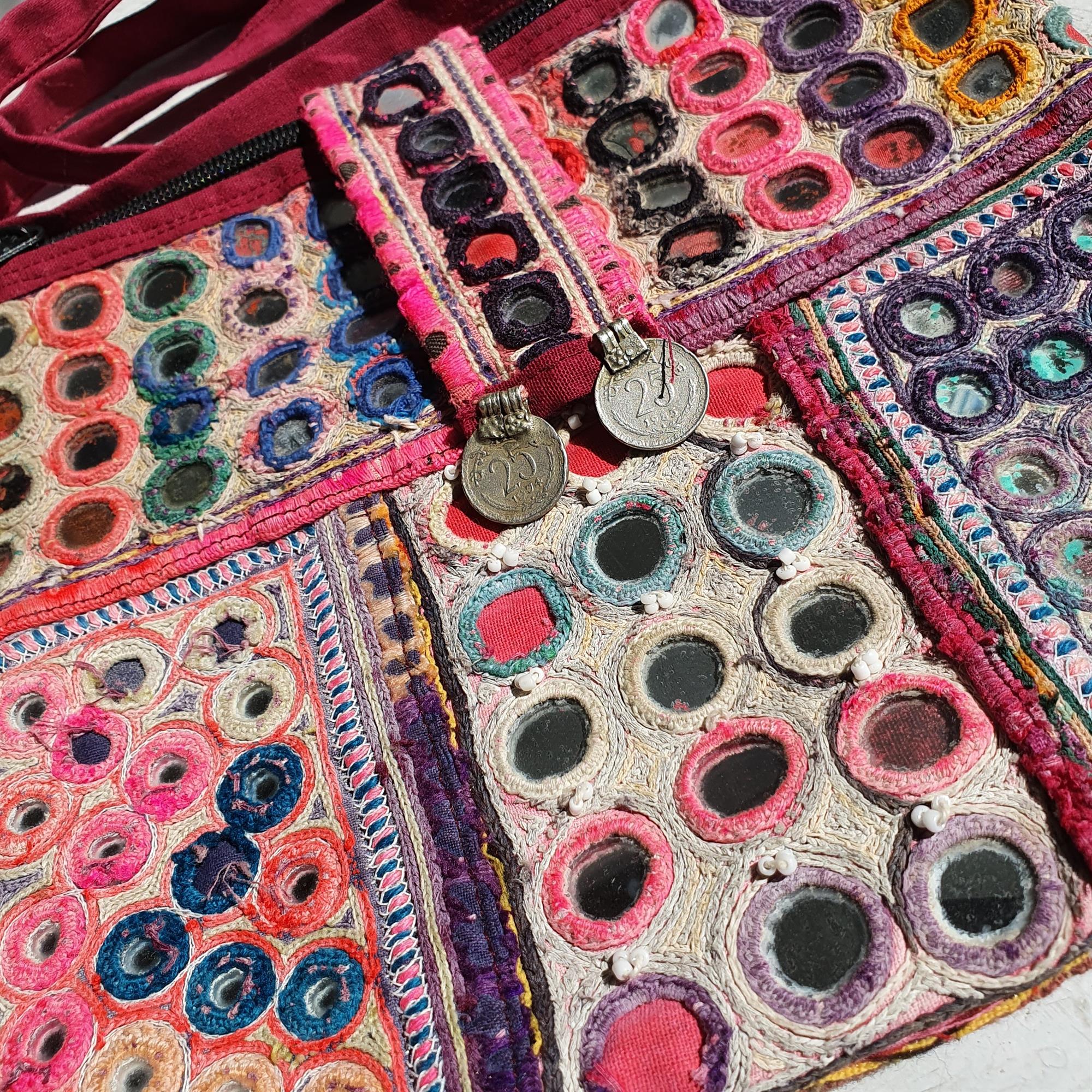 Disse skuldertasker er syet i smukke gamle stykker med spejle, alle tasker er uperfekte, på den helt perfekte måde.