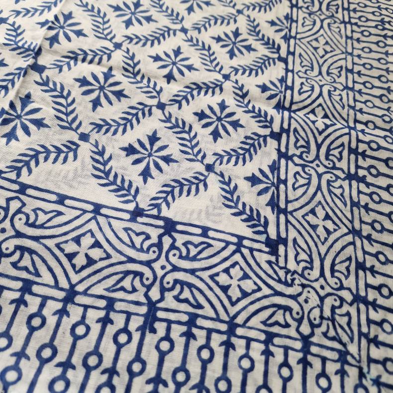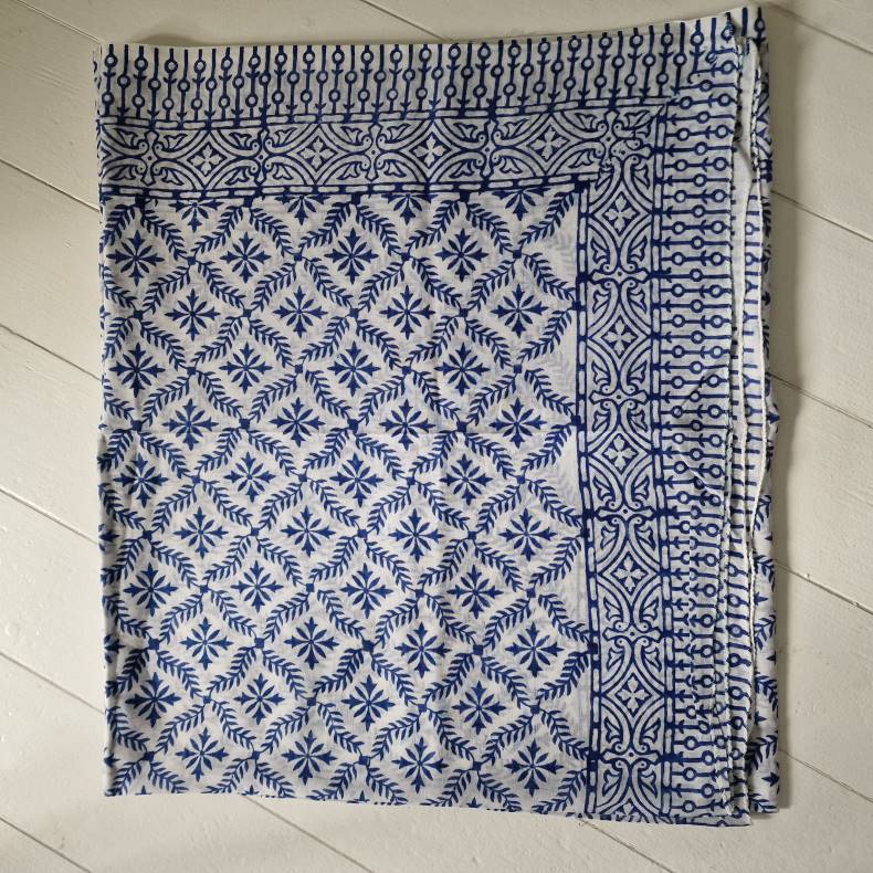 Bloktrykt bomulds tørklæde blåt/hvidt 117x198