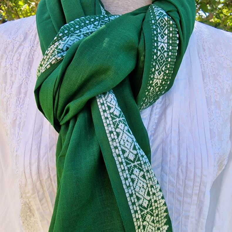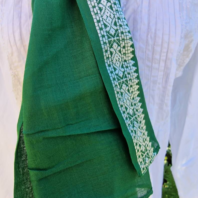 Grønt tørklæde med hvid bort