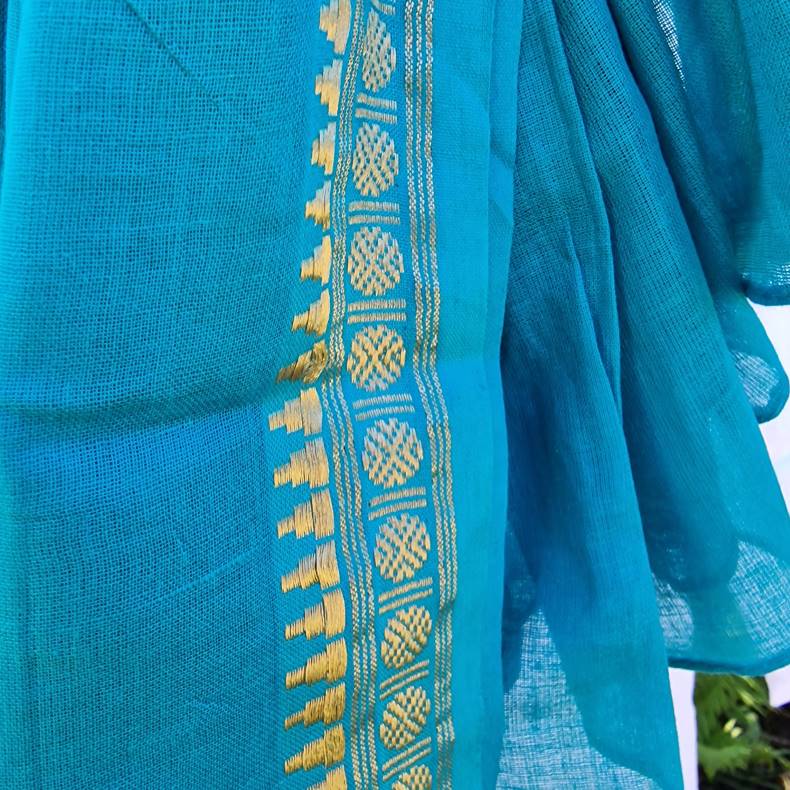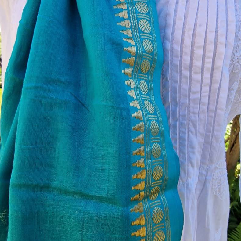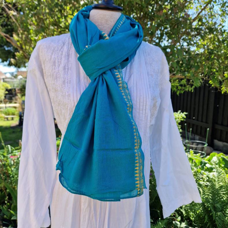 Grønturkis tørklæde med gylden bort