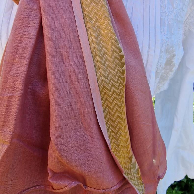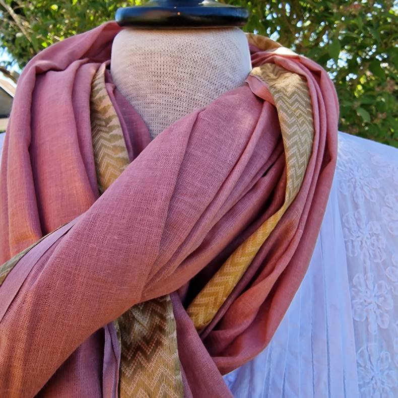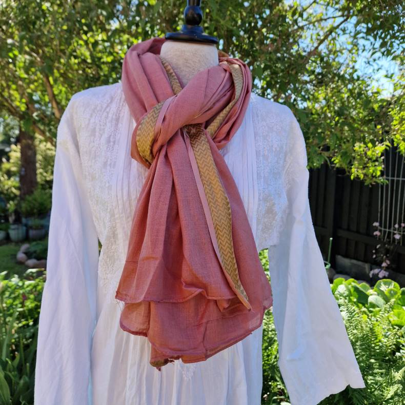 Rosa tørklæde med gylden zikzak bort