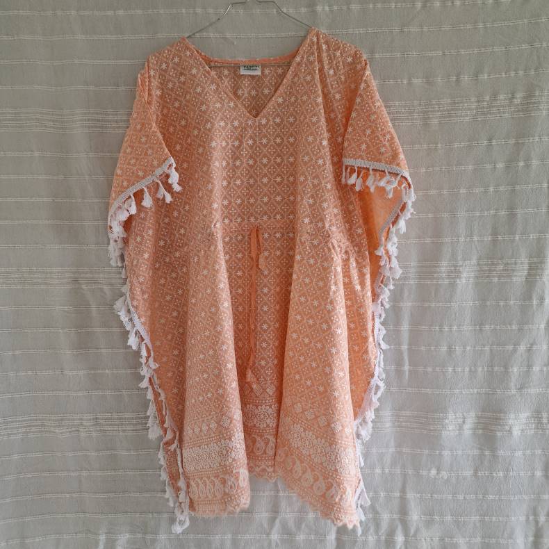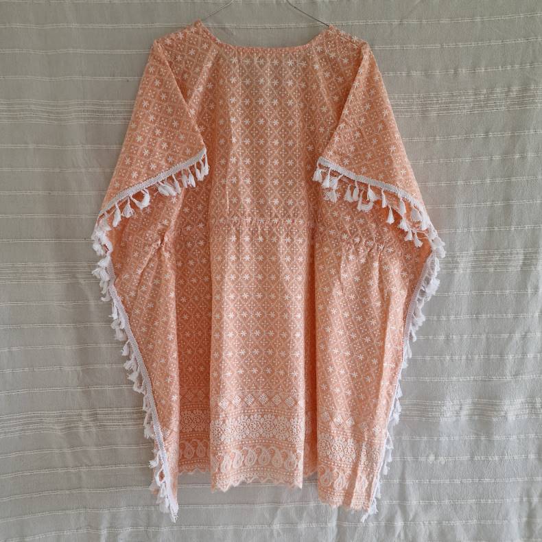 Bomulds kaftan med broderi fersken