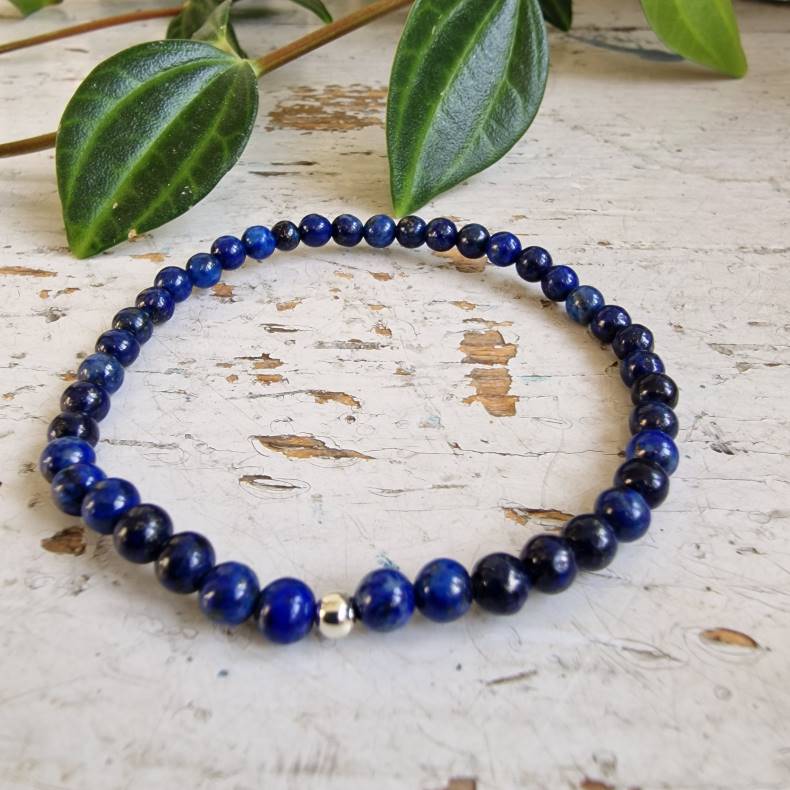 Dette armbånd med 4 mm lapis lazuli-sten er mere end bare et smykke – det er en blå detalje med dybe rødder i historien. Engang forbeholdt konger og præster, nu en smuk tilføjelse til dit håndled. Den forgyldte stålperle giver lige det ekstra pift, der gør designet helt særligt.