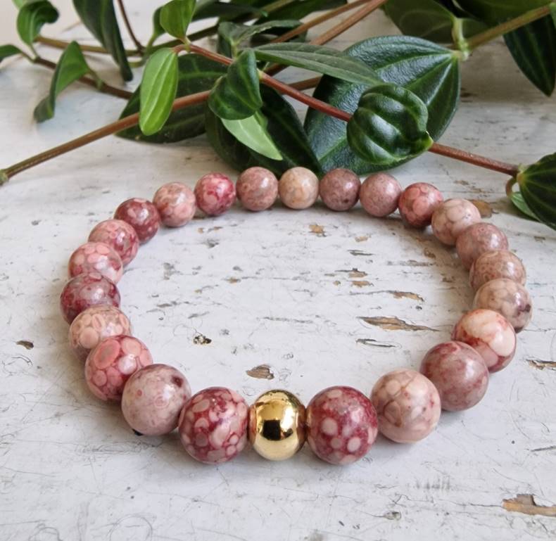 Stenarmbånd i rosa koralrodsfossil – elegance med sjæl