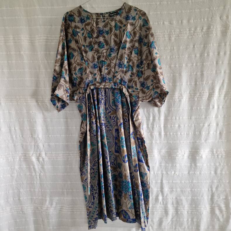 Blå Brun Hvid Turkis Vintage silke Vaskeanvisning for silke