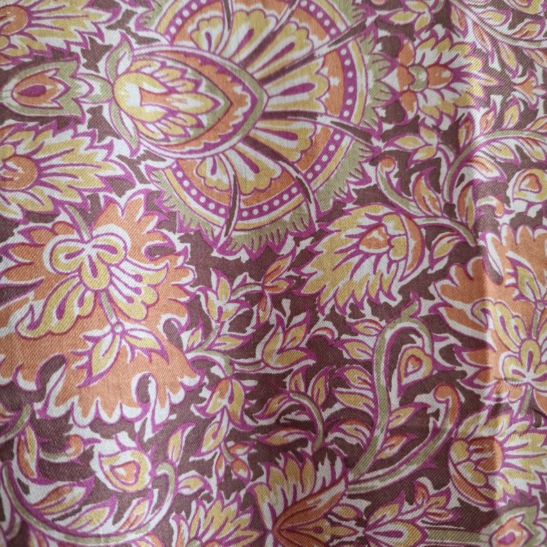 Lækker Kjole syet i omhyggeligt udvalgt vintage silke saree, unik og kun den ene.  V-hals , knapper ned foran samt bindebånd
