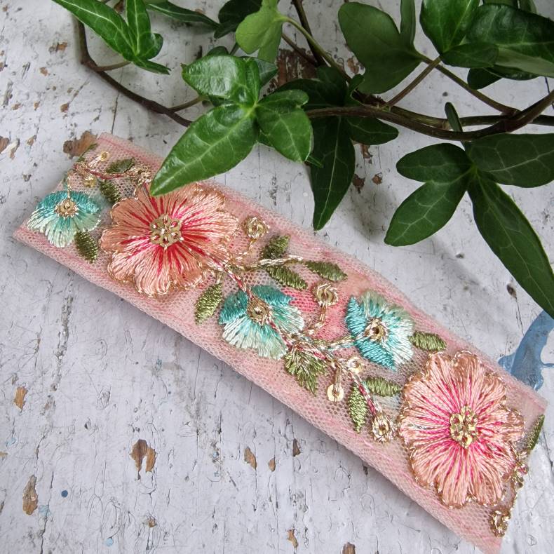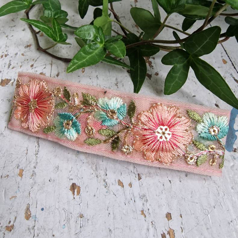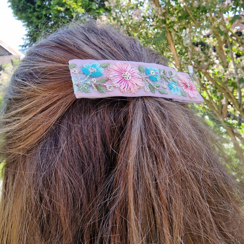 Rosa blomst hårpynt med 10 cm spænde No.1