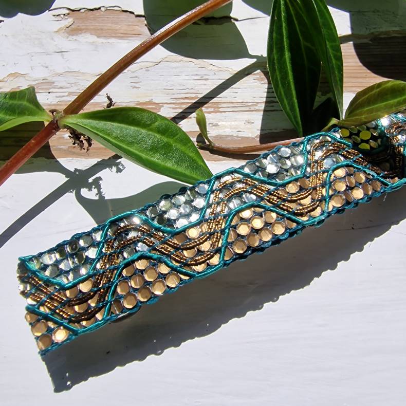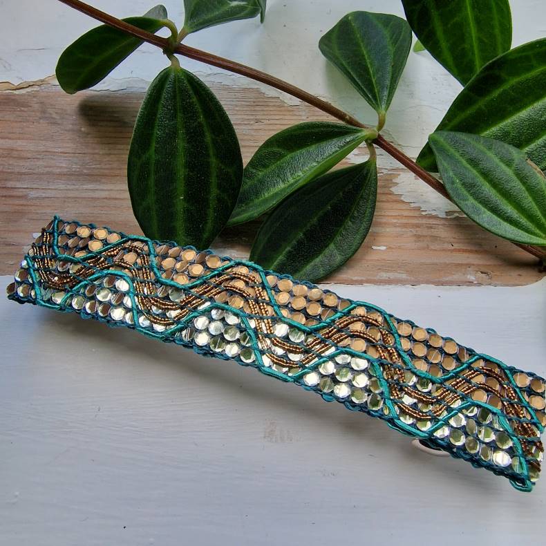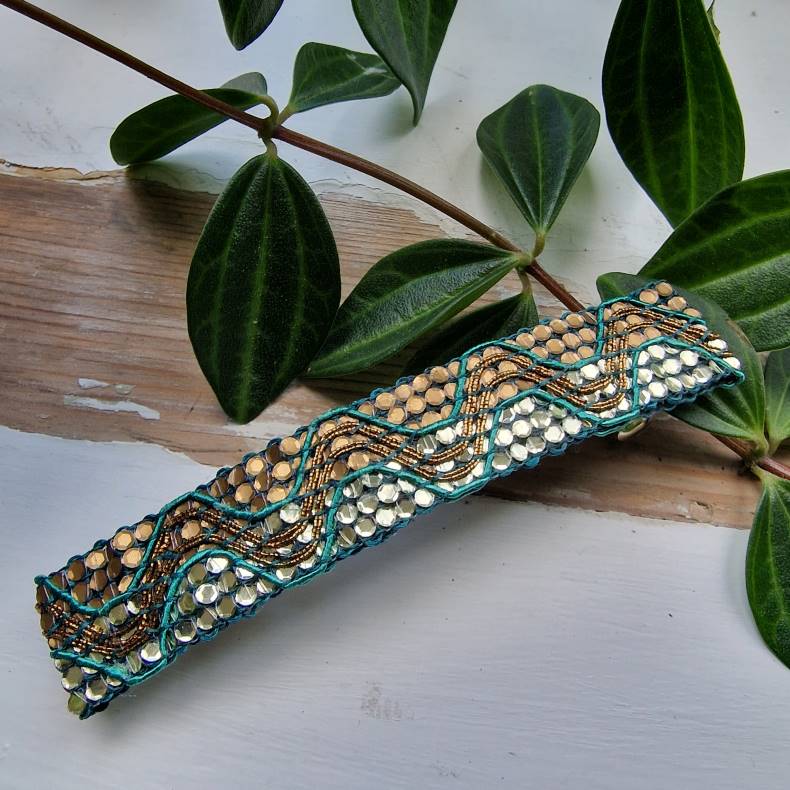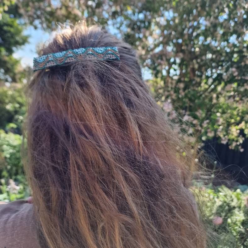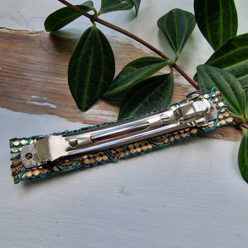 Guld/turkis hårpynt med 10 cm spænde No.42