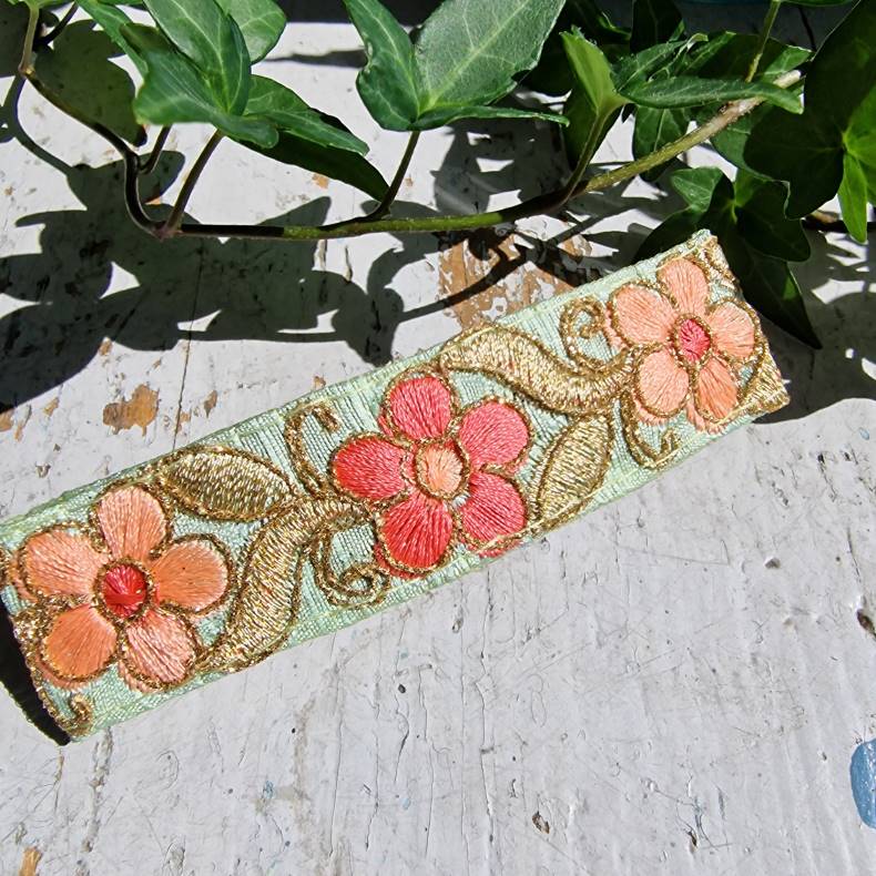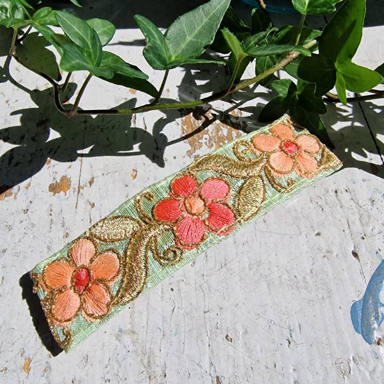 • Håndbroderede indiske silkebånd