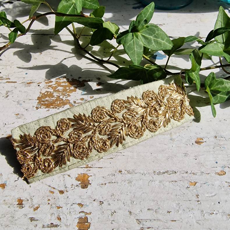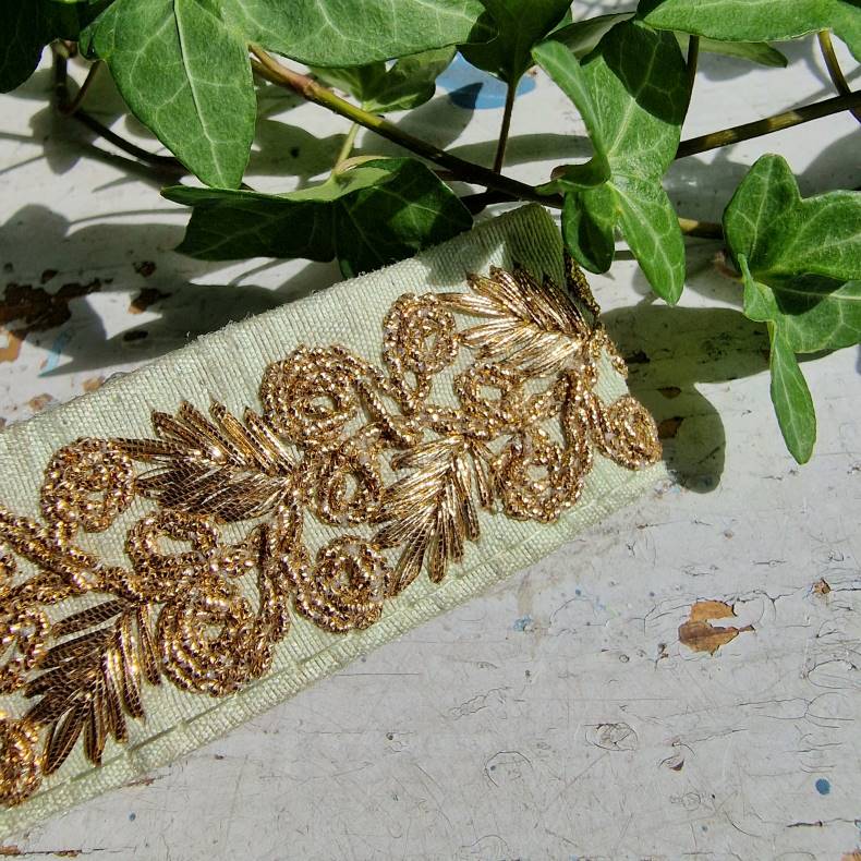 • Håndbroderede indiske silkebånd