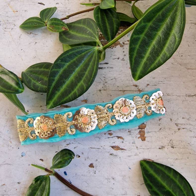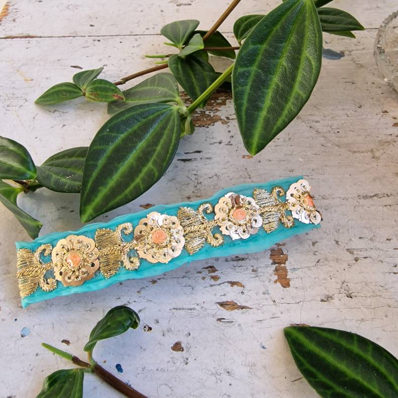 Turkis hårpynt med 10 cm spænde No.109