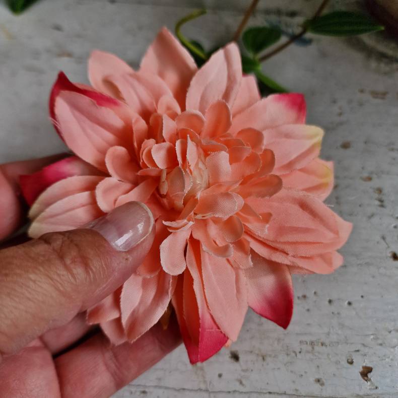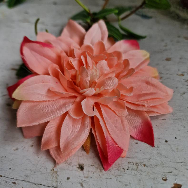 Blomsten i naturtro stof måler ca. 10 cm og er monteret med clips for nem fastgørelse.