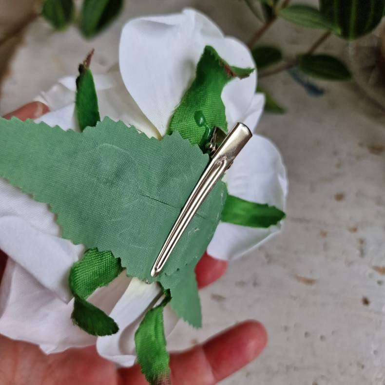 Elegant og naturtro stofrose med clips – til pynt med omtanke