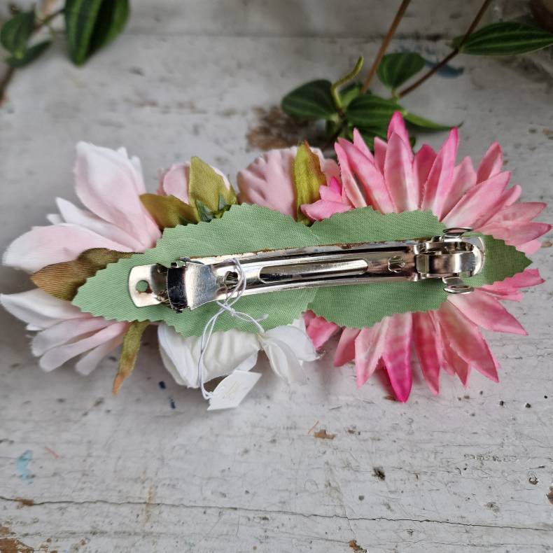 Rosa og hvide blomster mix hårspænde 10 cm NO: 41