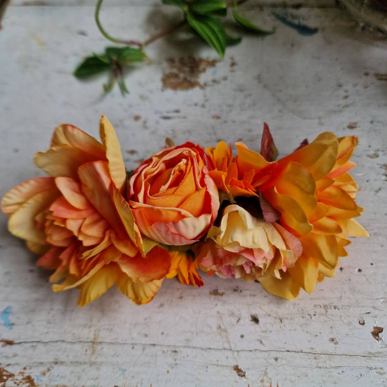 Orangeblomster mix hårspænde 10 cm NO: 13