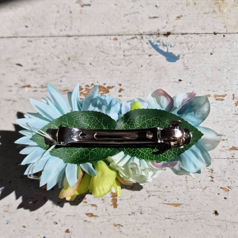 Blå/grøn blomster mix hårspænde 10 cm NO: 12
