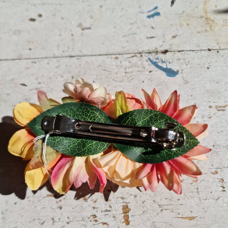 Dette smukke hårspænde kombinerer feminine blomster med en stilfuld tone-i-tone farvesammensætning.