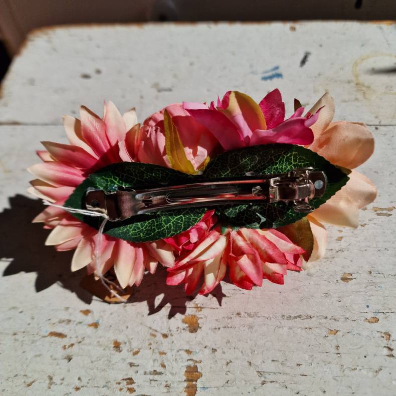 Pink og fersken blomster mix hårspænde 10 cm NO: 20