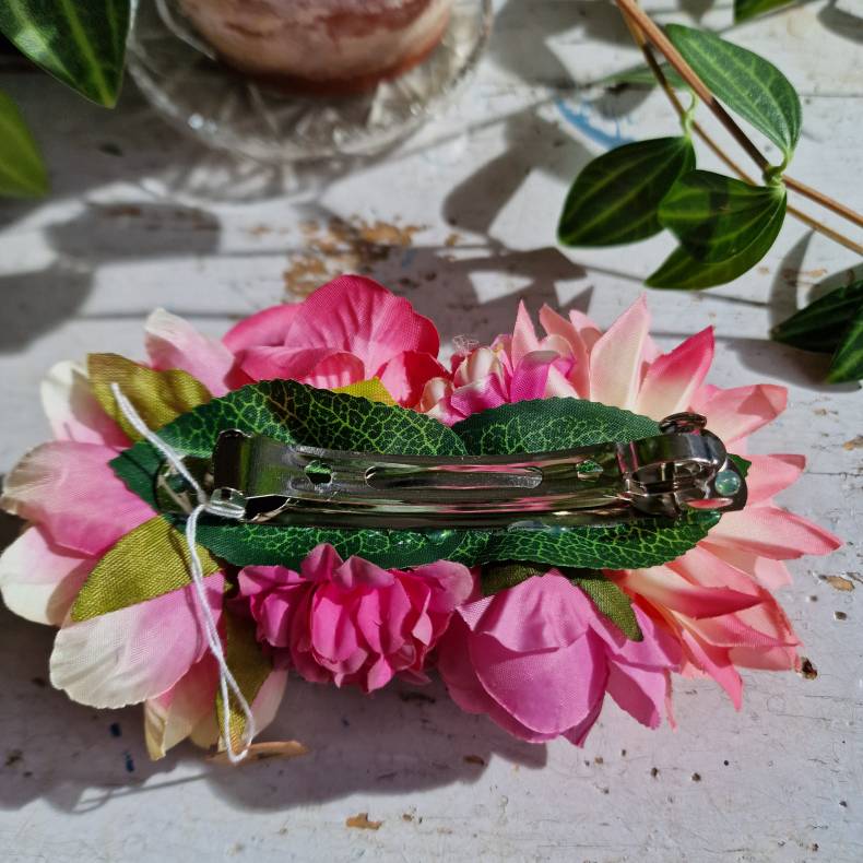 De smukt formede blomster er arrangeret i et naturligt og levende udtryk, som gør spændet til et unikt blikfang i håret.