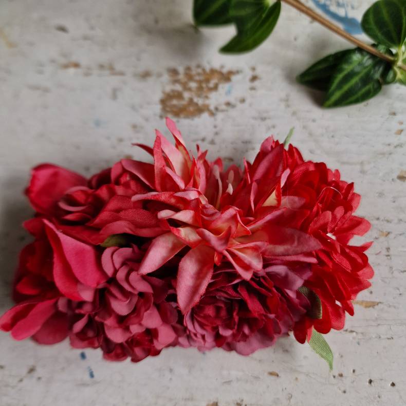 Rød mørk blomster mix hårspænde 10 cm NO: 47