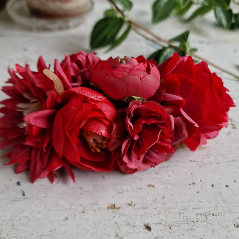 Rød mørk blomster mix hårspænde 10 cm NO: 43