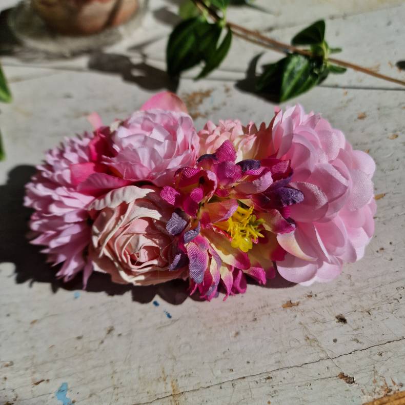 Rosa og pink blomster mix hårspænde 10 cm NO: 54