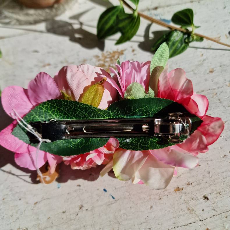 Pink og rosa blomster mix hårspænde 10 cm NO: 51